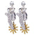 Sparkling spurs feature silver spurs encrusted with clear rhinestones ending with a gold rowel that spins freely. Drop earrings measure 1.5 inch long. Hypoallergenic stainless steel posts.