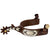 These antiqued spurs feature a 2" shank, a 1" band and an 8 point rowel. Engraved German silver trim adds the perfect detail to these spurs. Men's size.