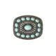 This rectangle Nocona ladies western buckle by M&F Western Products features a smooth edge with an antique desert scenery in the background with stamped cactus. There is western scrolling and feathers on the corners and small dots on the edges.