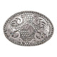 Beautifully designed buckle by M&F Western Products. Oval buckle with an antique gold praying cowboy and horse motif with an antique silver cross. Scrolling accents in copper around the motif. Accented with a beaded edge.
