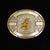 Oval buckle that features a centered motif surrounded by silver filigree and a decorative edge.