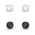 Why choose one when you can have both? Grab this earring set featuring two pairs of earrings, one a clear sparkling cubic zirconia crystal and the other a dark black crystal. Both have a copper tone setting for added interest to the design. Each earring is secured by a hypoallergenic post back wire.