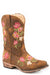 This child boot features a tan faux leather upper with intricate floral embroidery on the vamp and shaft. The vintage TPR outsole adds flexibility, while the padded comfort insole ensures a comfortable fit.