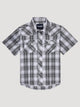 Wrangler Little Boy Long Sleeve Snap Front Plaid Western Shirt - Seaside Teal