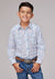 Roper Boy's White/Blue/Tan Windowpane Plaid