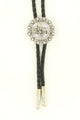 Add some flair to your western wear! Double S bolo tie by M&F Western Products features a black braided rope with silver tips accented with a silver oval southwestern concho embellished with a turquoise stone in the center. Adult bolo-36" long.