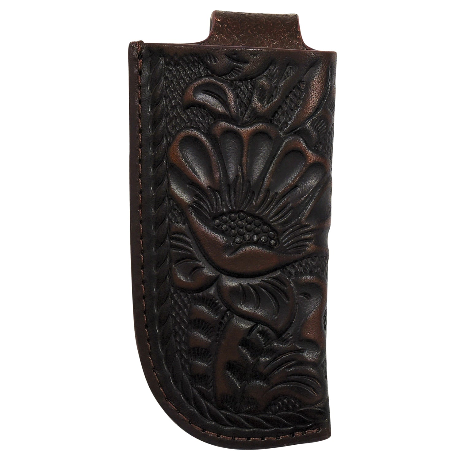 Justin Mens Knife Sheath Genuine Leather Brown Floral Tooling
