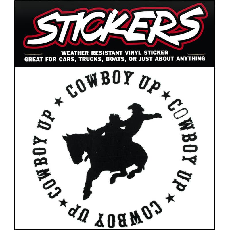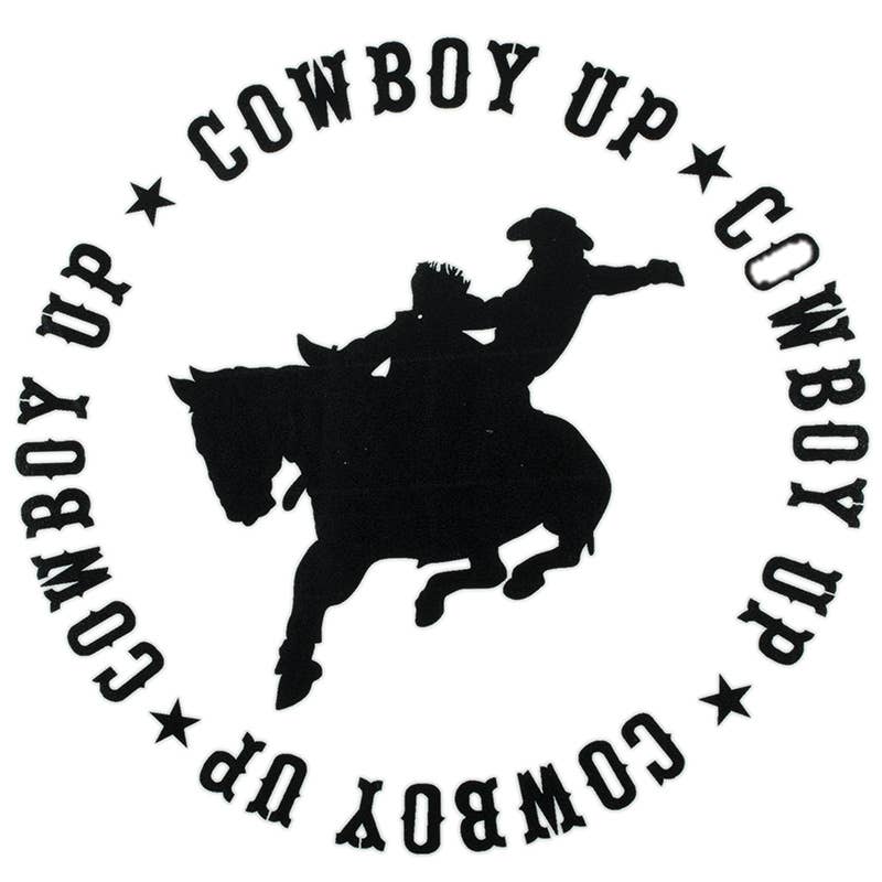 The cowboy up vinyl sticker features a bull rider. It is crafted with an easy-to-remove adhesive that adheres to most glass, metal, and plastic surfaces. It is great for adding a touch of western to essentials like laptops, and water bottles, as well as cars, trucks, motorbikes, and trailers.