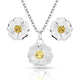 The combination of turquoise and shine in this jewelry set makes it a stunning accessory. The design is a round turquoise stone in the center with clear cubic zirconia crystals at the top and bottom. A smooth silver tone wraps around either side to create a round shape and attaches at either end to a 19 inch adjustable silver tone chain. Earrings with the same design are secured by hypoallergenic post back wires.