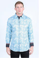Elevate your wardrobe with our Men's Satin Cotton/Spandex Modern Fit Long Sleeve Shirt. This Cotton Print Dress Shirt is a versatile choice for any occasion, offering a comfortable fit with stretch cotton material.