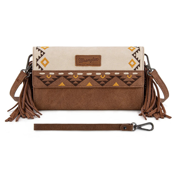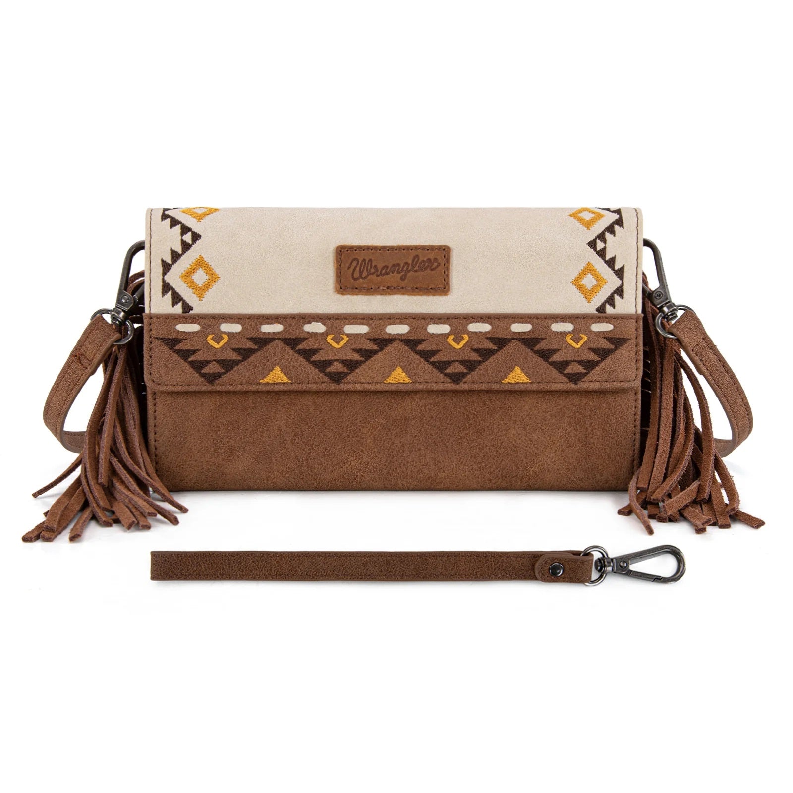 • Embroidered Aztec pattern on the flap with magnetic button closure
