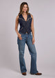 Timeless and refined, the Western Blazer is crafted from a smooth, high-quality crepe blend that offers a soft handfeel and elegant drape. It features distinctive western tailoring, with a single-point curved front yoke, double-point curved back yoke, and arrow-point detailing at the princess seams. Designed with a notch collar, single-button closure, and a center back vent, it’s finished with welt and flap pockets, buttoned cuffs, and shaping darts for a flattering silhouette that moves with ease from day to evening.