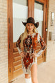 Featuring a bold geometric Aztec pattern in earthy tones of beige, black, and ivory, this full-length skirt is crafted from lightweight, flowing fabric. A subtle side slit adds a modern edge while allowing ease of movement and a hint of sass. The high-rise elastic waistband provides a flattering, comfortable fit for everyday wear, ranch days, or country concerts.