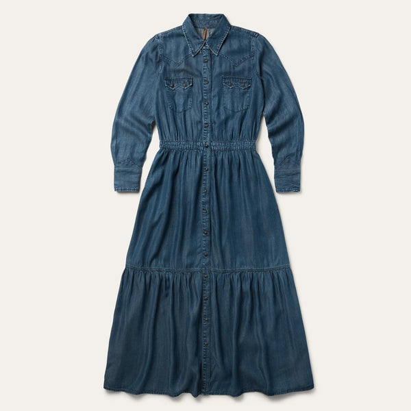The Denim Western Maxi Dress is made from soft, breathable lyocell denim. Its full-length, two-tiered silhouette features classic western detailing—from single-point yokes to flap chest pockets, along with an elastic waist, gathered skirt, snap closure and side seam pockets. Like all of our women’s apparel, the Denim Western Maxi Dress is thoughtfully designed and crafted for lasting comfort, quality, and style—from sunup to sundown.