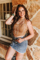Ivory Stretch Suede Boot Stitch Concho Buttons Corset Top