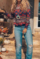This Aztec Print Western Vibe Oversized Button Down showcases a unique design with a trendy western vibe. Made with lightweight and breathable fabric, it offers both style and comfort. With an oversized fit, it provides a relaxed and effortless look. Perfect for an on-trend yet comfortable outfit.
