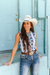 Ivory Turquoise Red Ribbed Printed Button Down Top