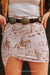 Introducing our vibrant Print Wrap Skirt with Built-in Shorts — a must-have for every modern cowgirl’s wardrobe! Crafted for active days at the rodeo or stylish nights out, this mini skirt features a vivid southwestern pattern in shades of coral red, turquoise teal, and midnight black on a soft stretch fabric.