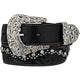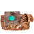 This Hooey original ladies tan leather belt features hand-tooled filigree with cutouts and detailed faux turquoise buckle.