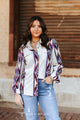 This women's long sleeve shirt features standard 1 pt front and back yokes, patch pockets and flaps, and a cotton/poly printed fabric with an allover or wallpaper stripe floral design. It also includes front and back waist darts and a 1 snap cuff for added style and comfort.