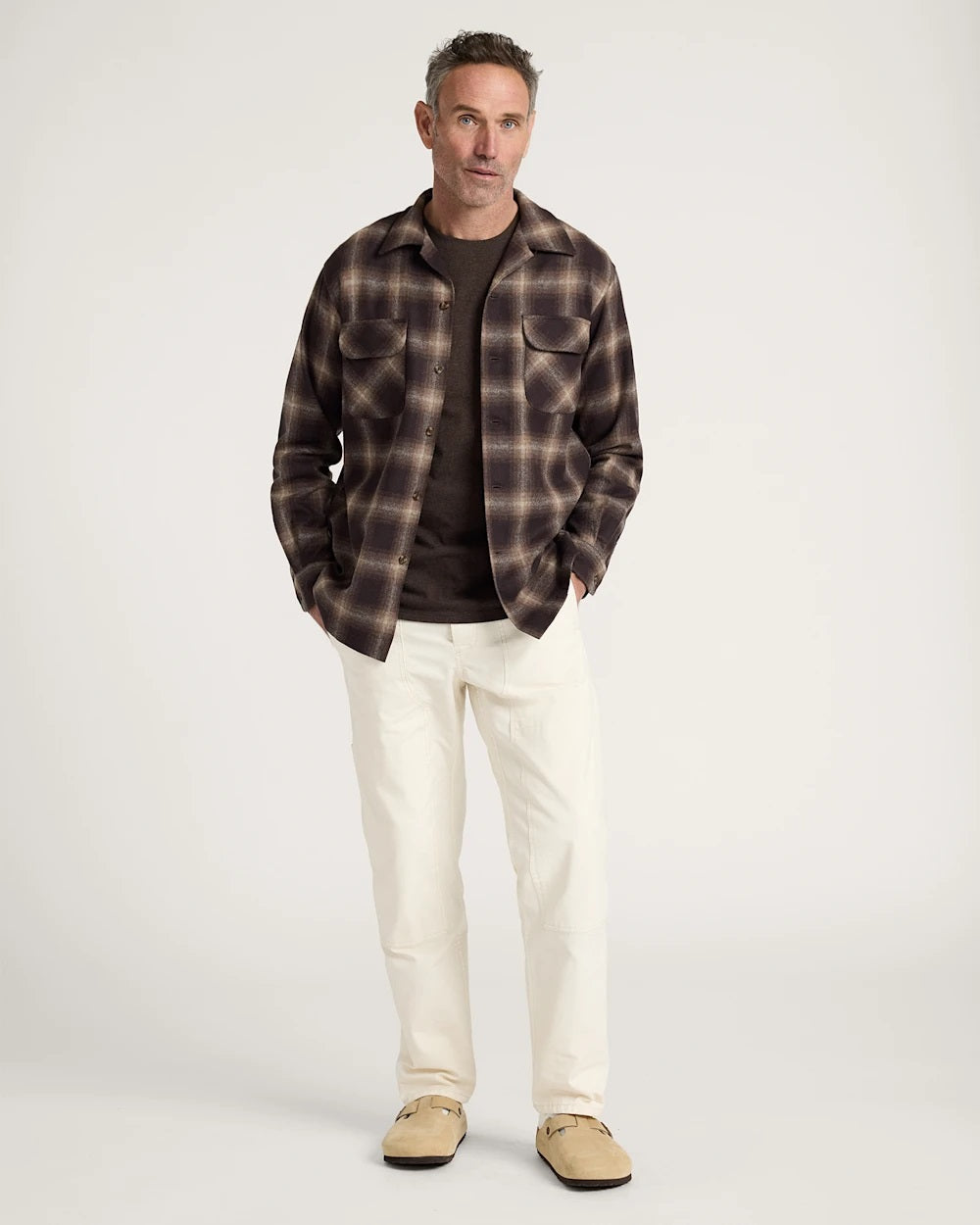 An essential among California surfers in the '60s, and still Pendleton's bestselling shirt today. Made from premium, machine-washable wool sourced from local ranchers in Umatilla County, Oregon near the Pendleton mill. Rugged, midweight fabric is water, odor and stain-resistant. Square bottom, two bias-cut pockets.