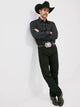 Wrangler® Retro® slim fit jeans nod to our history while introducing fits and washes suited for the modern cowboy. These jeans sit low on the waist and make it easy to show off your favorite belt buckle. That design detail is our Western heritage showing through, something that happens often with the Wrangler® Retro® collection. If you're going for a coordinated cowboy style with these men's slim fit straight leg jeans, pair them with a Western Wrangler® Retro® button-up to complete your look.