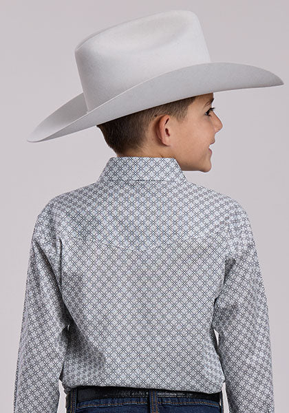 This classic western shirt for boys features a durable stretch poplin construction that moves with active wear. The snap front closure and spread collar deliver authentic cowboy style, while the single-point back yoke and dual chest pockets with flaps provide practical functionality. Finished with the iconic Roper "R" embroidery, it's built for young riders who demand both comfort and genuine western heritage.
