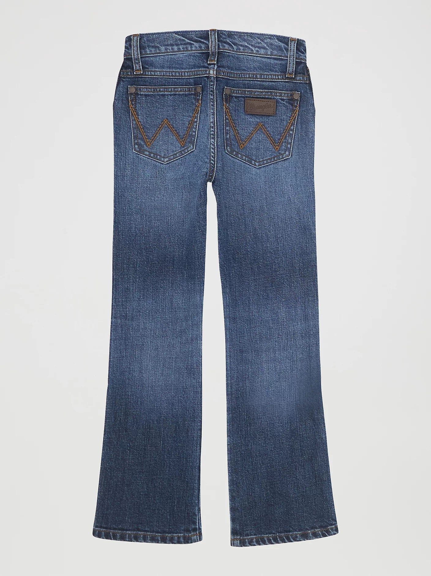 He'll never want to wear another pair of jeans. Our Boy's Wrangler Retro® Slim Boot Jean takes our classic Western styling with an adjust-to-fit waistband that grows with him. These bootcut jeans sit lower on the waist, fit slim through the thigh, and leave plenty of room for his boots. Plus, they're crafted from cotton with just a hint of stretch for extra comfort.