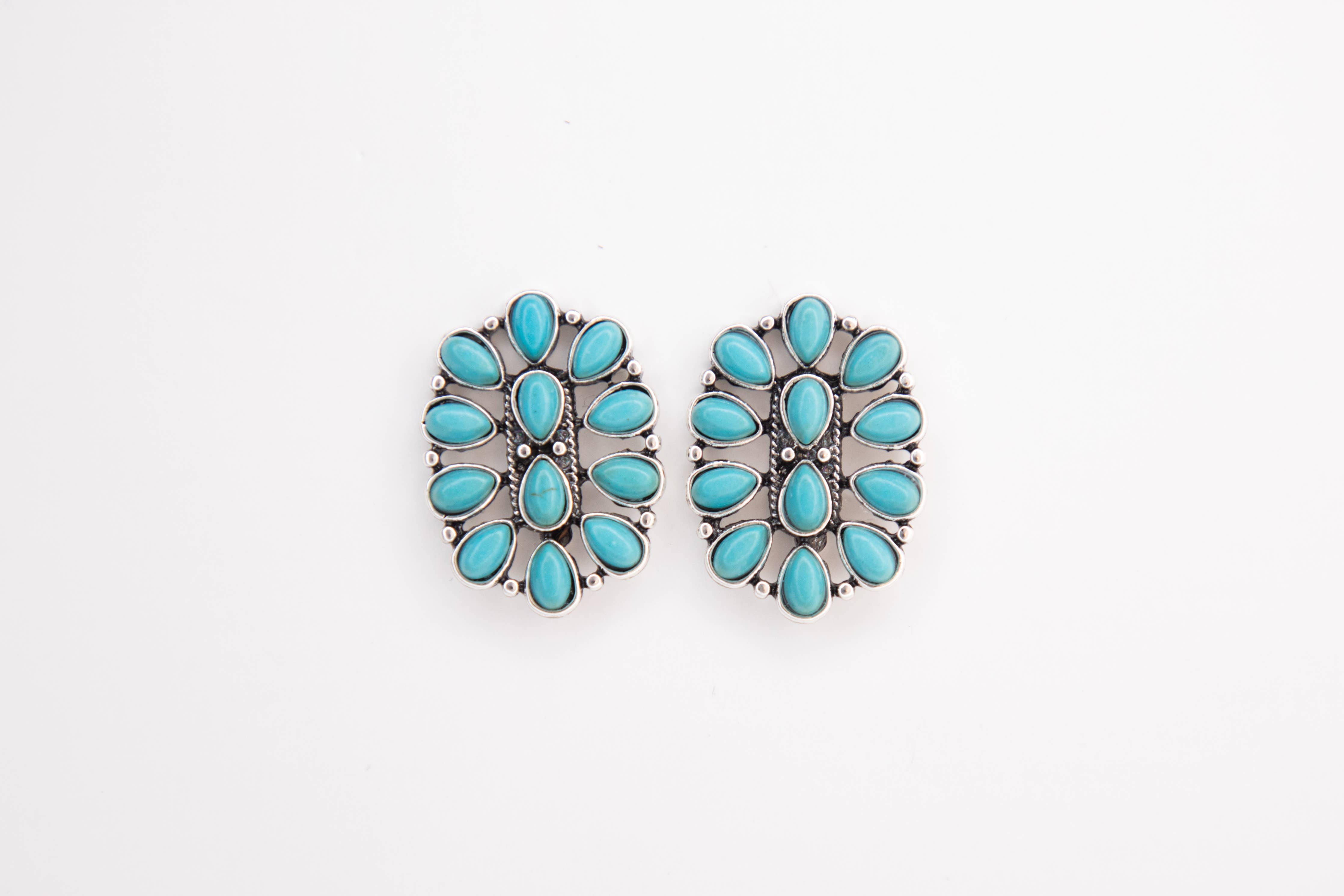 1.25" Silver Oval Post Earring with Turquoise Cluster