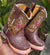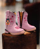 This toddler boot features a pink tooled print design, combining style and comfort for little feet.