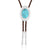 Made for the ones who go against the grain. The Outlaw Turquoise Bolo Tie has a silver tone oval base that has bright cut engravings that frame the center turquoise stone. The brown braided leather cord is weighed with two silver arrow pointed tips to complete the bold design. Stone color will vary.
