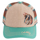 This CatchFly Ladies Cap brings fun to your look with its tan base and a multicolored fuzzy saguaro cactus detail that pops with personality. The brown bill features subtle tonal stitching and a printed cowhide underside for a touch of unexpected style. Finished with a breathable brown mesh back and adjustable snapback, it’s perfect for keeping cool and looking cool during your adventures.