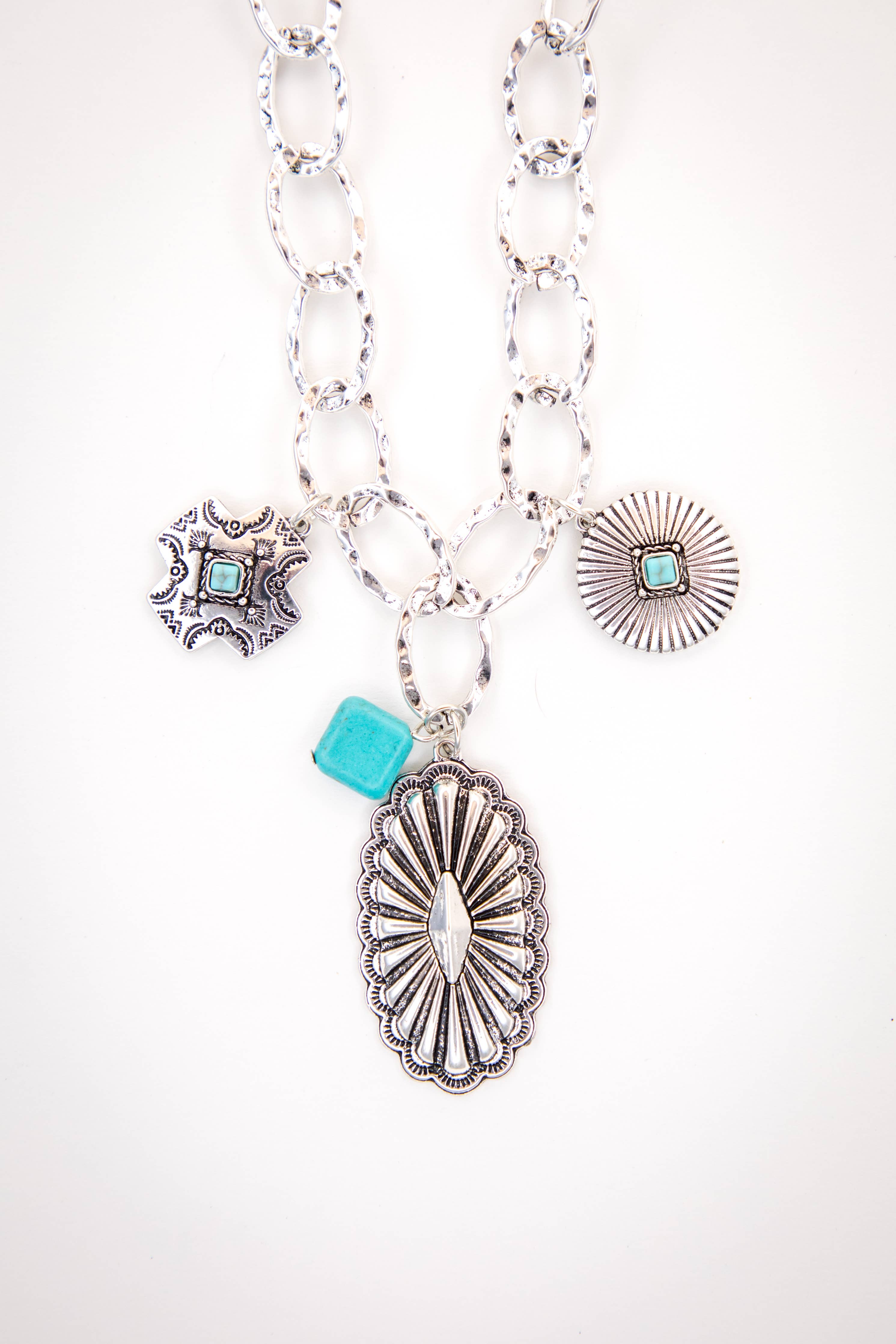 18" Chunky Chain in Silver or Gold Concho Charm Necklace