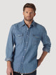 Wear the look of a champion with this distinguished logo shirt. It's crafted of soft, top-quality fabric with the Wrangler® logo embroidered boldly in several key places. A buttondown collar, Western back yoke and button flap front pockets cap off the impressive style.