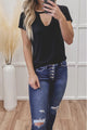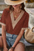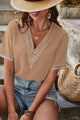 Plain V Neck Lace Edge Short Sleeves Top - Rust