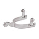These stainless steel spurs feature a 1-3/4" shank, a 3/4" band and a 10 point rowel. Black background highlights the pretty engraved design. Ladies' size.