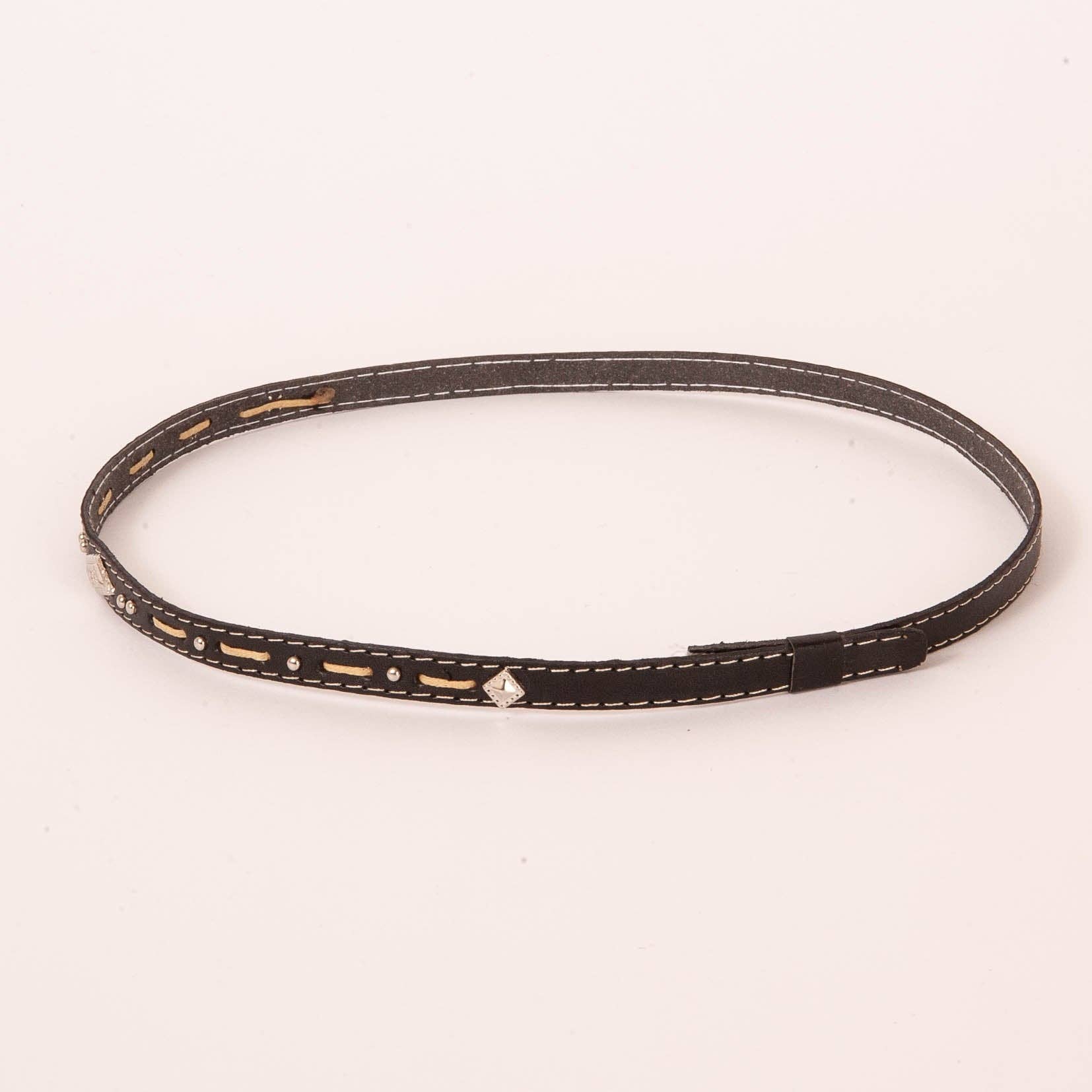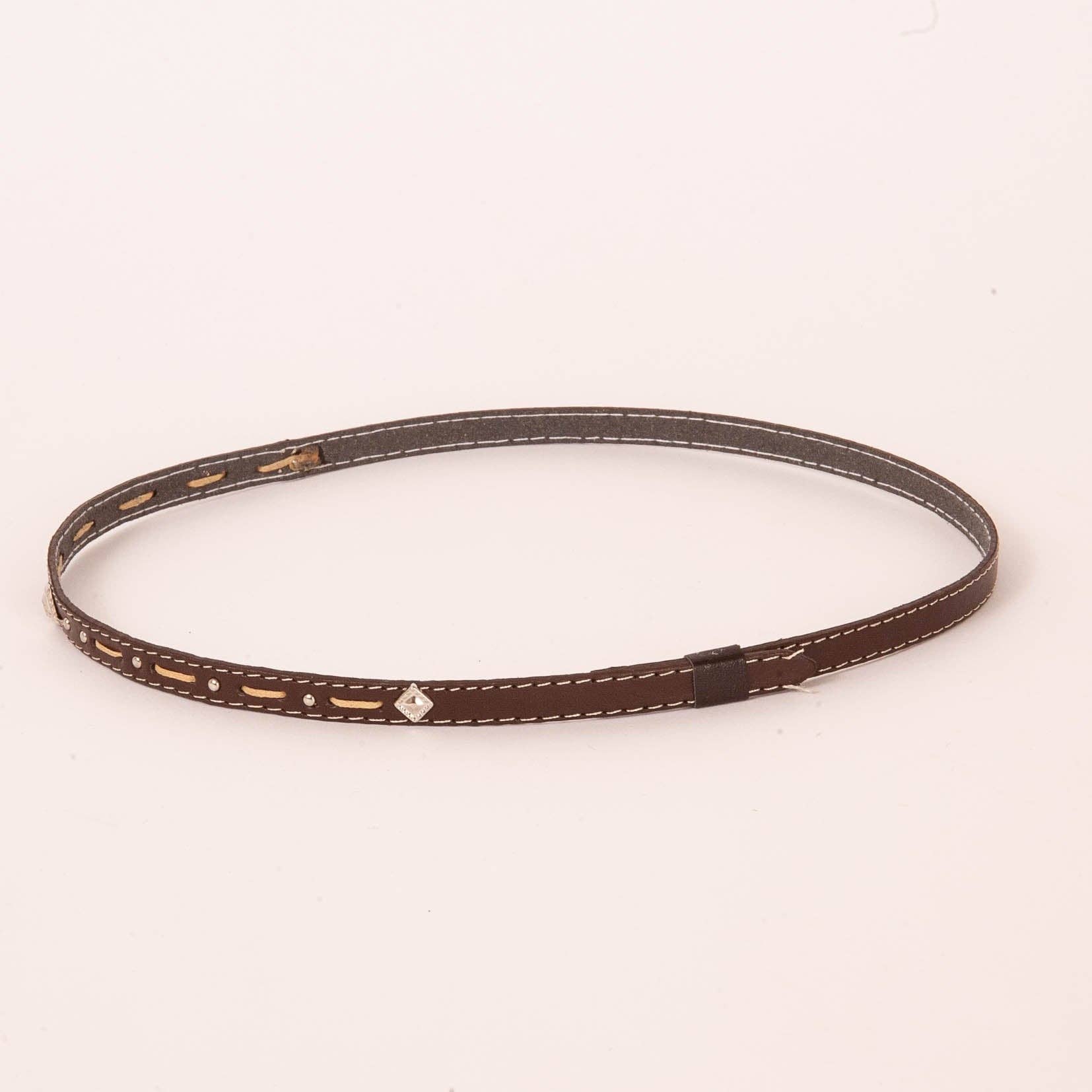 Introducing the Piney Hat Band! This stylish and functional hat band is perfect for sprucing up any ordinary hat. It comes in two handsome colors, brown and black, and features small metal studs and detailed stitching