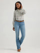 This women's long sleeve shirt features standard 1 pt front and back yokes, patch pockets and flaps, and a cotton/poly printed fabric with an allover or wallpaper stripe floral design. It also includes front and back waist darts and a 1 snap cuff for added style and comfort.