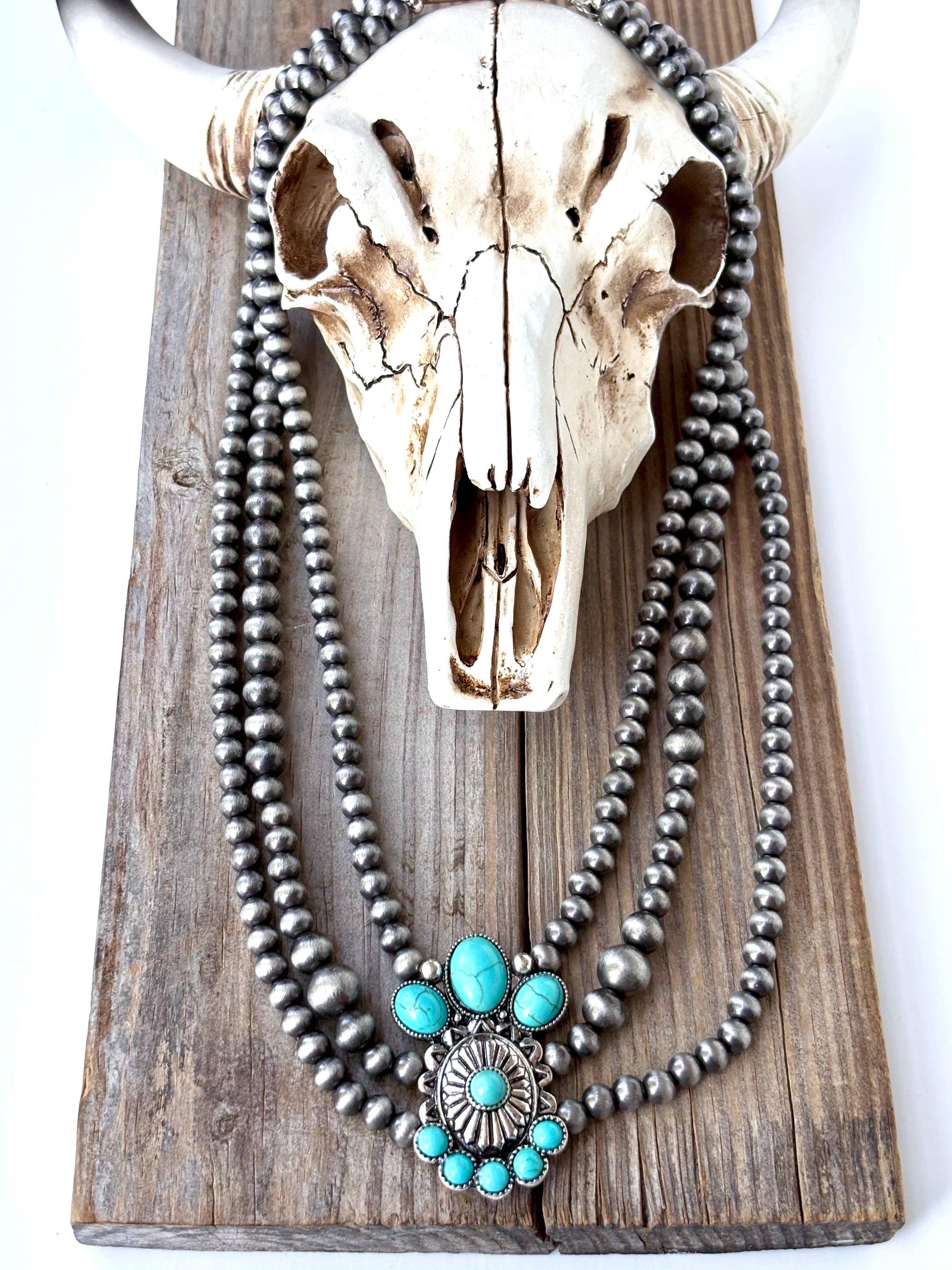 3 Layered Navajo Pearl Turquoise Stone Pendant Necklace