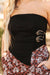 Elevate your wardrobe with this black stretch strapless western top, designed to combine comfort and style seamlessly. Crafted from a stretchy fabric, it ensures a snug, flattering fit that moves with you. The standout feature is the double buckle detail on the side, adding a bold, western-inspired edge to the sleek silhouette. Perfect for pairing with high-waisted jeans or skirts, this top brings a modern twist to iconic western fashion while offering all-day wearability..