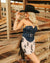Denim strapless corset top with buckle strap and v-neckline. Western rodeo