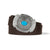 Handcrafted in Los Angeles using unique materials sourced from around the globe, this belt features full grain Latigo leather from Argentina and a Native American-inspired silver-plated trophy buckle with a turquoise accent