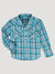 Wrangler Little Boy Long Sleeve Snap Front Plaid Western Shirt - Seaside Teal