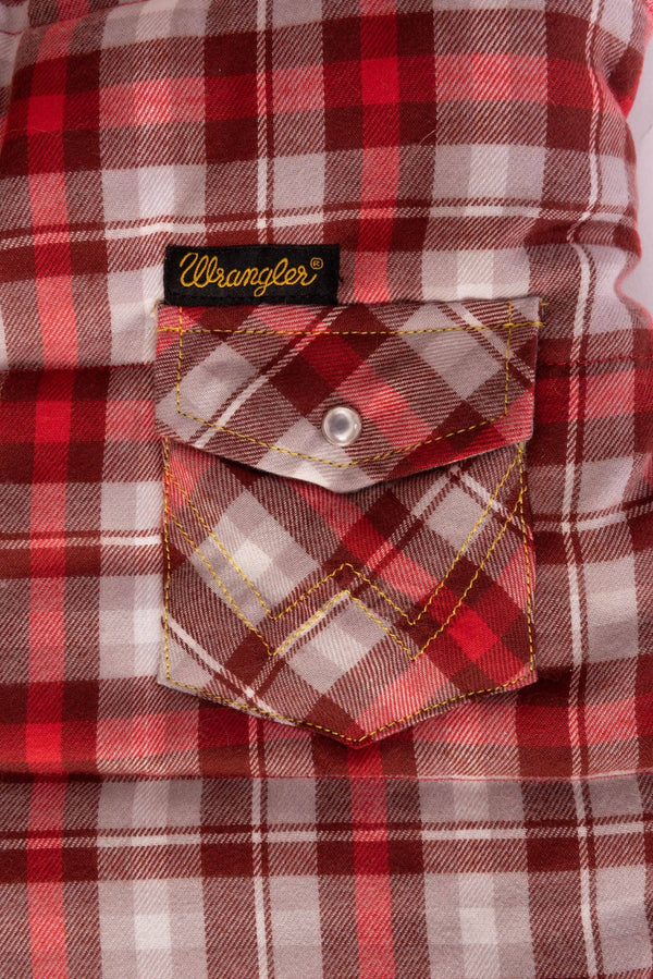 Get two outfits in one with this reversible vest featuring plaid flannel on one side and soft fleece on the other. The sure-fit adjustable belly band, Wrangler® logo label and two snap pockets make this a 'must have'. Includes an opening near neck for easy lead attachment. Machine washable 100% polyester.