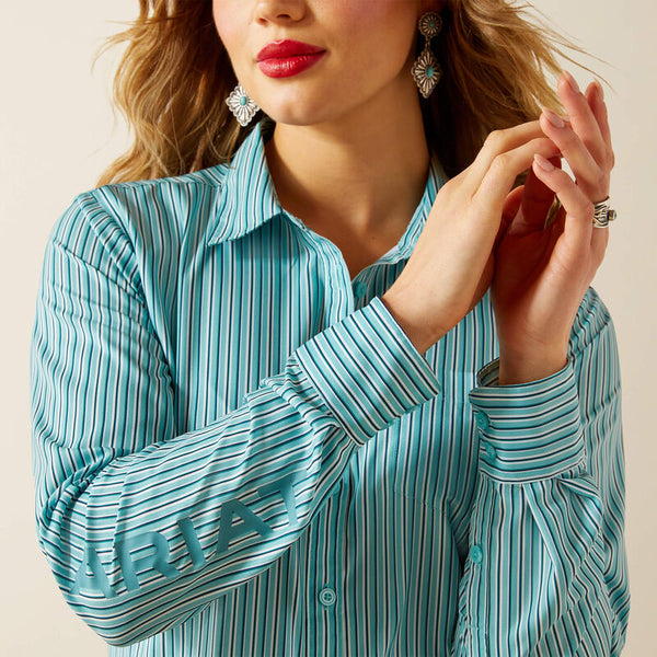 Rep Team Ariat in athlete-tested, arena-proven shirt. It's engineered with an easy-care performance fabric, which stretches with your every move and looks polished right out of the wash. Add UPF sun protection and a flattering, saddle-ready fit, and you've got a shirt that can keep up.