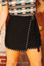Solid wrap skorts with studded detail and buckle belt.