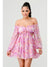 Floral Pebble Chiffon Print Ruffle Mini Dress - Pink