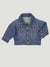 This denim jacket exudes cuteness with a touch of Western flair. Soft stretch fabric allows for maximal movement, while front and back yokes and 'W' stitched pockets provide a classic Wrangler® look. A snap-front placket allows for easy on and off.