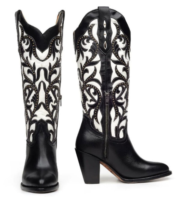 Isabela is a symbol of elegance. Its long shaft, adorned with a contrasting engraving and finely placed studs, along with the laser-cut geometry, will accentuate the shape of your leg.