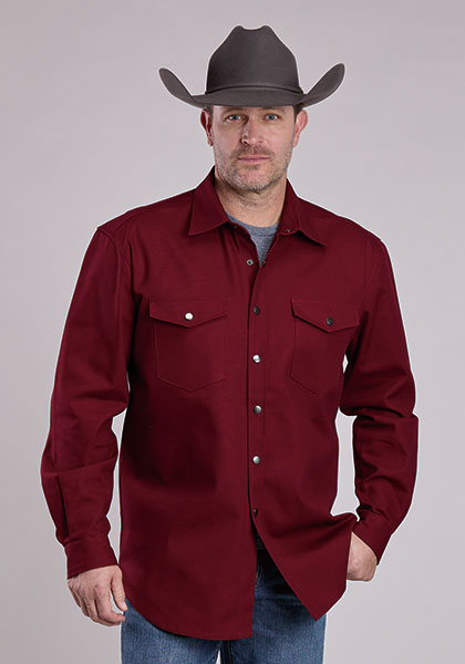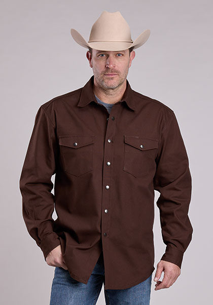 Saddle up in authentic Western style with this classic Roper Cotton Canvas Shirt. Crafted from 100% cotton brushed twill, this rugged shirt features a straight back yoke and practical 1-pocket design with flaps for secure storage. The single snap cuff and antique metal snap front deliver that timeless cowboy aesthetic, while garment washing adds a broken-in feel right out of the box. Choose from four versatile colors—Black, Teal, Wine, or Brown—to match your ranch wardrobe. Built for hard work and honest wear.